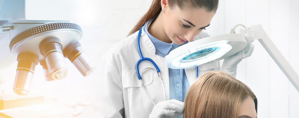 Якщо мають місце проблеми зі шкірою голови (лупа, себорея, псоріаз, екзема та багато інших), проводиться ретельний огляд зовнішнього шару шкіри. При необхідності береться зішкріб - невеликий скребок з поверхні шкіри, який потім досліджується під мікроскопом. З метою підготовки може знадобитися не мити голову за 1-2 дні до консультації, про що вас обов'язково попередять.